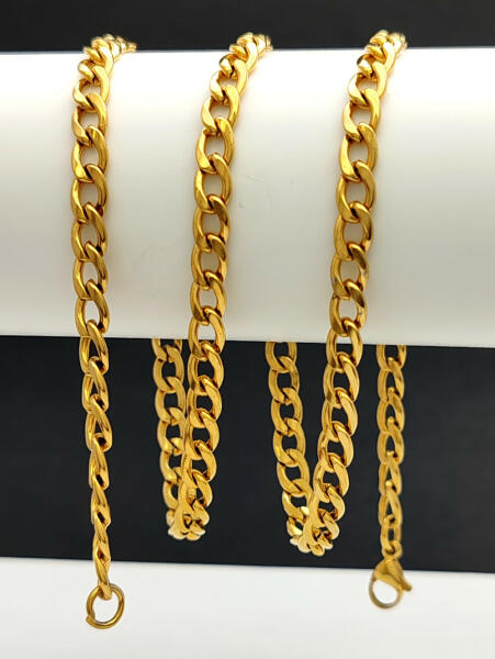 Aranyszínű nemesacél (316L) kerek szemes nyaklánc. Minőségi anyagának köszönhetően nem színezi a bőrt, nem feketedik. Időtálló ékszer, amit fürdéskor sem kell levenni, bátran viselhető folyamatosan. Antiallergén ékszer. 14K arany színben kapható. Nyaklánc hossza: 55 cm. Nyaklánc szélessége: 5 mm. Igény esetén rövidíthető, melyet ajándékként elvégzünk, a kért