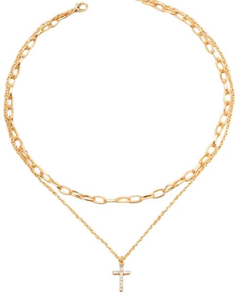 Divine Cross Nyakék Elegáns, kétrétegű nyakék arany színben, finom kereszt alakú medállal, amely csillogó kövekkel díszített. Az alsó nyakék finoman körülöleli a dekoltázst, míg a felső nyakék nagyobb láncszemekkel modern hatást kölcsönöz. Ideális kiegészítő a mindennapi viselethez és különleges alkalmakra, amely kiemeli a stílusét és eleganciáját. Tulajdons