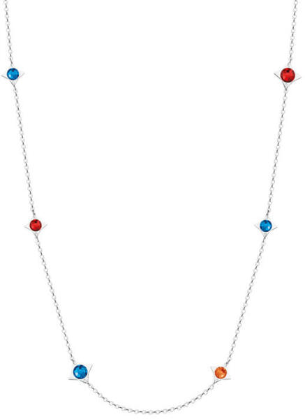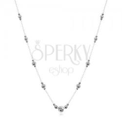A 925 ezüst nyaklánc sűrűn összekapcsolt, ovális szemekből álló, finom láncból tevődik össze, amelyen ezüst színű gyöngy hármasok vannak felfűzve, fokozatosan növekedve az elülső rész felé haladva. A középső gyöngy bemetszésekkel van díszítve és az oldalain fényes és sima golyók találhatóak. A nyaklánc állítható hosszal és delfinkapcsos zárszerkezettel re