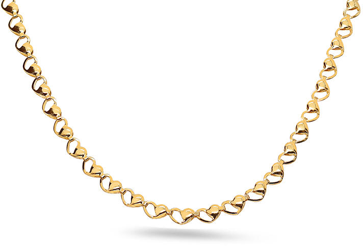 Az összefonódó szívekből készült nyaklánc romantikus és bájos dizájnt kínál. A nyaklánc láncszemei sima és nagyon fényes felülettel rendelkeznek.