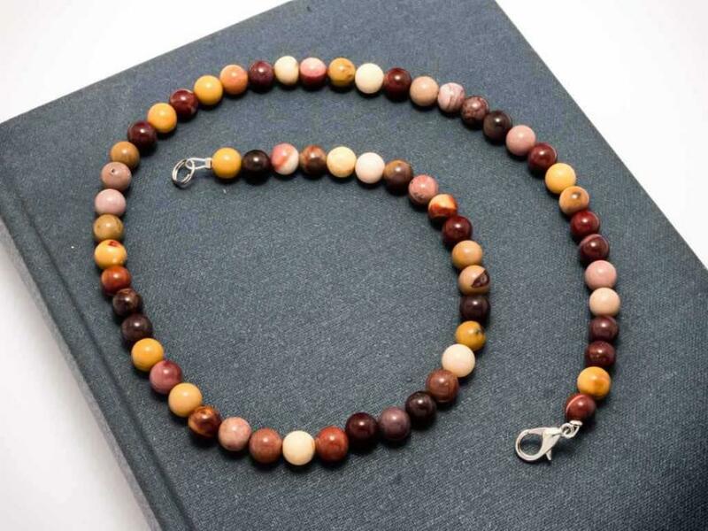 Mokait jáspis ásványgolyókból fűzött nyaklánc. Amit a jáspisról érdemes tudnod: Gyakori előfordulása és a földszínek széles skálája miatt a jáspist ősidők óta használják dísztárgyak és pecsétek készítésére. Mágikus ereje miatt is nagyra értékelték. Úgy hitték, hogy túlvilági szellemi cselszövések ellen véd és a szerelmi bánatot mérsékli. Gyógyhatás