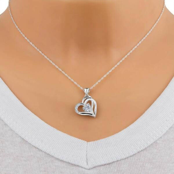 A medál méretei: 16 x 16 mmA medál súlya: 2,40 gLánc szélesség: 1,1 mmLánc hossza: 410 mmHosszabbító lánc hossza: 30 mmTeljes hossz hosszabbítással: 440 mm (+/- 5%) Lánc súlya: 1,40 gFémjel – Van. Ez a 925 ezüst nyaklánc olyan műalkotás, amely szív alakú medáljával vonzza a tekintetet. A medál egyik vállát apró, átlátszó cirkóniák díszítik, míg a másik váll