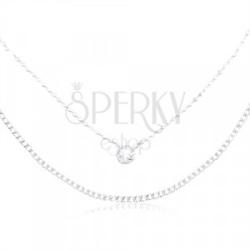 A 925 ezüst nyakláncot két lánc alkotja - egyik golyókból és a másik ellipszis alakú szemekből. A rövidebbik, golyókból álló láncra egy csillogó kerek, átlátszó cirkónia van odafogatva fényes foglalatban. A nyaklánc delfinkapoccsal záródik. Cirkónia átmérője: 4 mmLáncok szélessége: 1,5 mm és 1,2 mmNyaklánc hossza: 360 mm (+/- 5%) Nyaklánc súlya: 2,8 gFémjelzés