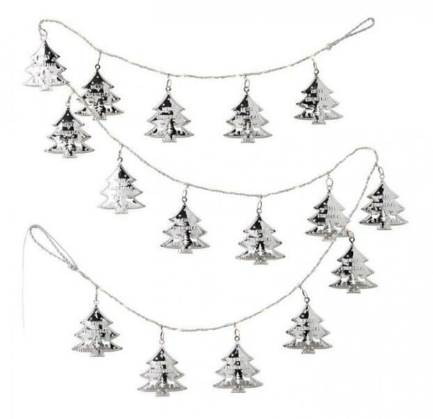 Karácsonyfa alakú LED dekorációs lánc. A megvilágított rész hossza: 1.5 m. A tápkábel hossza: 0.3 m. Fény színe: meleg fehér.