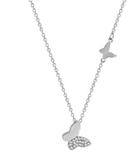 Zircon Butterfly Nyakék Különleges Zircon Butterfly nyakék szuper áron. Ez a pillangókkal díszített nyakék Önt is biztosan elbűvöli. Az ékszer nem tartalmaz sem nikkelt, sem ólmot, sem kadmiumot, ezért érzékeny bőrű emberek is viselhetik. Tulajdonságok: A nyaklánc hossza: 36cm + 5cm A medál mérete: 1,1cm x 0,8cm Díszítése: cirkónia ékkövek Anyaga: Fém ötvözet Szín: