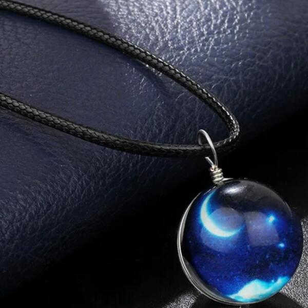 Universe Nyakék-Tip13 Ez a lenyűgöző nyakék, amelynek medálja az univerzumnak állít emléket. Egyedülálló kiegészítő, amely titokzatos és mágikus aurájával vonzza a figyelmet. A medál üveggömb formájú, amelyben színes univerzális motívum rejtőzik. Sötétben a medál finoman világít, ezzel még inkább hangsúlyozva misztikus és földöntúli szépségét. Az egyszer