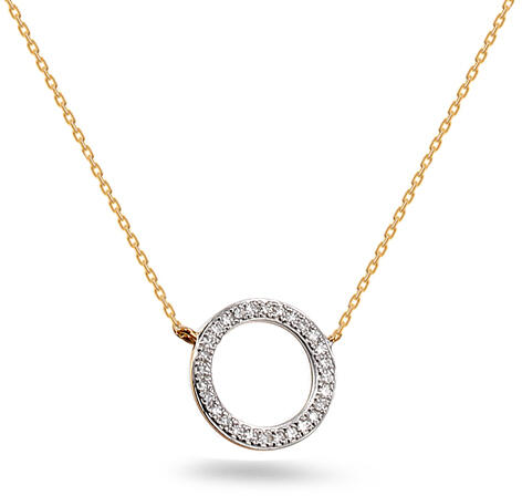 Elbűvölően szép - ilyen ez a csillogó nyaklánc, amely a gyűrű medálját díszíti, huszonnyolc gyémánttal, 0,070 ct össztömeggel, H színnel és SI1 tisztasággal. A dísz átmérője 10 mm. A gyémántok iZlato® hitelességi tanúsítvánnyal rendelkeznek.