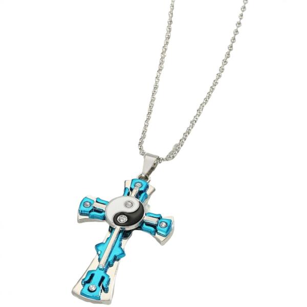 Yin Yang Cross Nyakék Yin Yang Cross nyakék verhetetlen áron. Az ékszer nem tartalmaz nikkelt, ezért érzékeny bőrű emberek is viselhetik. Tulajdonságok: A nyaklánc hossza: 54cm A medál mérete: 6cm x 3,5cm Anyaga: Nemesacél Szín: Ezüst/Kék