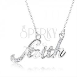 Nyakék 925 ezüstből, amelyet egymásra merőlegesen forrasztott ovális szemekből álló lánc és "faith" - "hit" feliratú medál alkot. A medál betűi részben simák, részben pedig áttetsző cirkóniákkal díszítettek. A nyakék hosszabbítható és delfinkapoccsal záródik. A medál méretei: 26 x 13 mmA lánc szélessége: 1 mmHossz: 410 mmToldólánc hossza: 50 mmTeljes hossz: 460