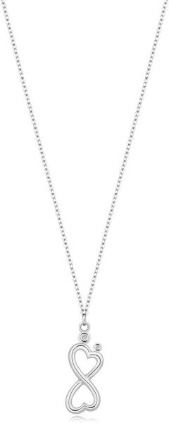 A medál méretei: 8 x 21 mmKisebb gyémánt átmérője: 1,05 mm A nagyobb gyémánt átmérője: 1,3 mmGyémántok teljes karátos súlya: 0,0055 ctTisztaság: I3Szín: átlátszóLánc szélessége: 1,2 mm Nyaklánc hossza: 390 mm (+/- 5%)A nyaklánc súlya: 2,60 gFémjel – van. A 925 ezüst nyaklánc az eleganciát és a szimbolizmust ötvözi. A szív alakú vállú, végtelen formájú med