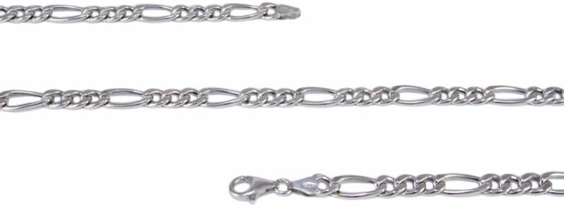 Klasszikus és kedvelt fazonú, üreges kialakítású, ródiummal bevont, mutatós 3+1 szemkötésű ezüstlánc.