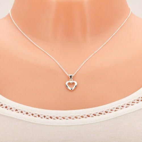 925 ezüst nyakék, hullámos, ferdén összekapcsolt szemekből álló láncból és egy szív kontúr alakú medálból. A szív kétoldalas, szimetrikus és sima. A nyaklánc hossza állítható és delfinkapoccsal záródik. A medál méretei: 11 x 11 mmA medál súlya: 1,1 gA lánc szélessége: 1 mmA lánc hossza: 450 mm (+/- 5 %)A lánc súlya: 1,5 gFémjelzéssel ellátott.