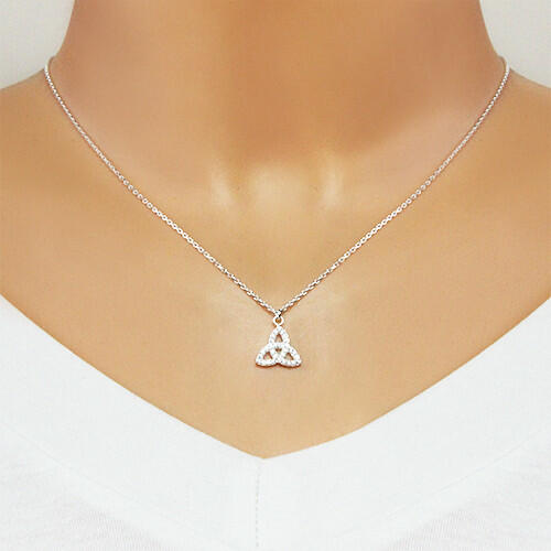 A 925 ezüst nyakláncot egy medál díszíti, amely Triquetra szimbólumra hasonlít. A medál apró átlátszó kerek cirkóniákkal van kirakva. A láncot egymással összekapcsolt, lapos szemek alkotják. Nyaklánc rugós karika kapoccsal. A lánc mérete: 12 x 14 mmA lánc szélessége: 1,3 mmA nyaklánc hossza: 410 mm (+/- 5 %)A nyaklánc súlya: 2,9 gFémjelzéssel ellátva.