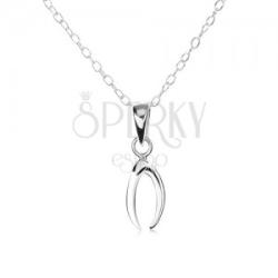 Ezüst nyakék 925 egymáshoz merőlegesen elhelyezett szemekből és sima, fényes patkó alakú medálból fényes csúcsokkal. A nyakék hossza állítható, delfinkapoccsal záródik. A medál méretei: 6 x 10 mm A medál súlya: 0,3 g A lánc szélessége: 1 mmA lánc hossza: 450 mm A lánc súlya: 0,8 g Fémjelzéssel ellátott.