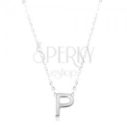 A 925 ezüst nyakláncot egy ferdén összekapcsolt ovális formájú szemkből álló lánc és egy medál alkotja - nagy nyomtatott P betű. A lánc a medál közepén levő szemen húzódik át. A nyaklánc hossza állítható. Delfinkapoccsal záródik. Medál méretei: 6 x 8 mmMedál súlya: 0,5 gLánc szélessége: 1,2 mmNyaklánc hossza: 420 mmHosszabbítható rész: 30 mmTeljes hossz: 450