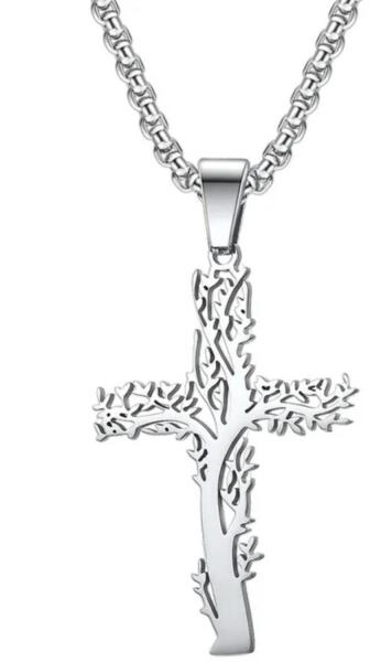 Tree Cross nyakék Elegáns nyakék kereszt alakú medállal, amely egy kifejező kiegészítő. Ötvözi a misztikus és a természetes motívumokat. A kereszt áttört fa alakú, ami a növekedést, stabilitást és a természettel való kapcsolatot szimbolizálja. A lánc erős és tartós, így biztosítja a hosszú távú, minőségi viselést. Ez a nyaklánc ideális azok számára, akik a s