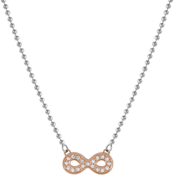 Nomination Soffio D'Amore női nyaklánc típusa 134004-024. Fedezze fel az időtlen eleganciát a Nomination Soffio D'Amore Steel Rose Plated Infinity nyaklánccal. Ez a strapabíró rozsdamentes acélból készült, gyönyörű darab egy elbűvölő gömblánc-kialakítással rendelkezik, amely ötvözi a modern stílust a klasszikus kifinomultsággal. A szívében lévő, csillogó kristályokk