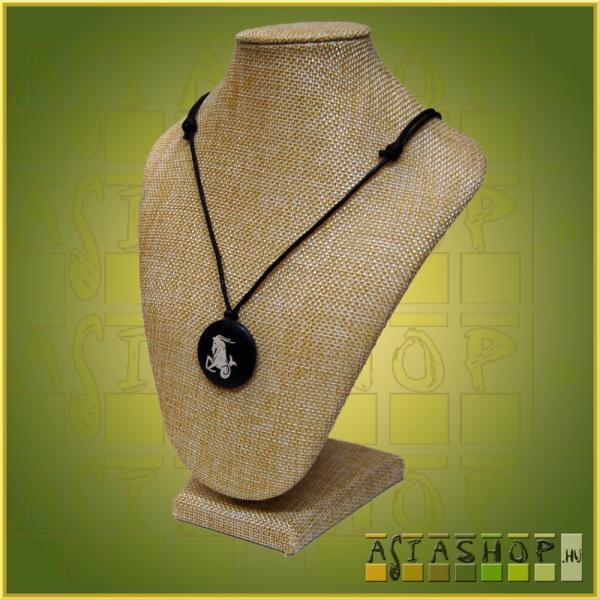 A Nyaklánc Horoszkópos Medállal Bak elnevezésű nyaklánc egy állítható hosszúságú zsinóron lévő 29 mm átmérőjű csont medál. Bak: December 22. - Január 20.