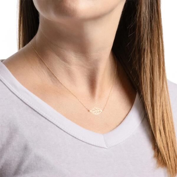 A levél mérete: 20 x 9 mmLánc szélessége: 0,6 mmNyaklánc hossza: 405 mmHosszabbító lánc hossza: 20 mmTeljes hossz a hosszabbítással: 425 mm (+/- 5%)Nyaklánc súlya: 0,46 gFémjel - Van. A 9K sárga aranyból készült nyakláncot finom levél alakú medál díszíti. Ez a levél gondosan kidolgozott, részletes kivágásokkal, amelyek a finom erezet illúzióját keltik. A medál felü