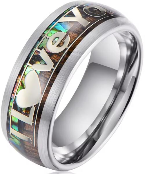 I Love You Gyűrű Ez az egyedi gyűrű nem csak stílusos divatkiegészítő, hanem a szeretet csodaszép szimbóluma is, melyet modern, attraktív dizájnnal fejez ki. A gyűrű látványos eleme a középen futó sáv, mely félig fa, félig gyöngyházas hatást kelt. Erre a színes háttérre került az "I Love You" felirat a szívecskével, ami személyes jelentőséget és érdekességet ad