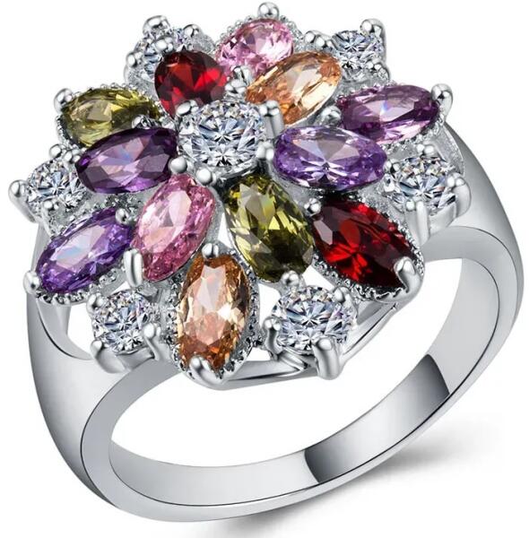 Glamor Gyűrű Ez a Glamor gyűrű hölgyeknek tarka ékköveivel a luxus és az elegancia megtestesítője. Ez a gyűrű magára vonja a figyelmet a mutatós és extravagáns színkombinációjával. Az ezüst alapú gyűrűt színes kristályok díszítik, amelyek ragyogó és dinamikus megjelenést kölcsönöznek neki. Ideális választás azoknak a hölgyeknek, akik egy markáns és szokatlan