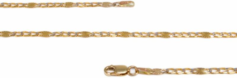 Csillogó véséssel és ródiummal díszített 3+1 szemkötésű fényes aranylánc.