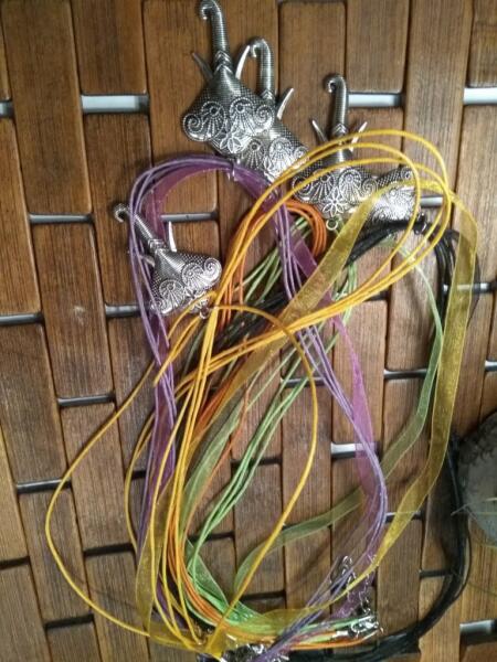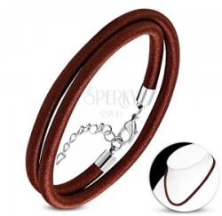 A nyaklánc egy rugalmas gumi szíjból áll, amely az egész hosszában vékony, barna fonallal van sűrűn bevonva. A nyaklánc hosszúsága állítható és delfinkapoccsal záródik. A nyaklánc szélessége: 5 mmA nyaklánc hossza: 470 mmA lánchosszabbító hossza: 30 mmTeljes hossz a hosszabbítóval együtt: 500 mm (+/- 5 %)
