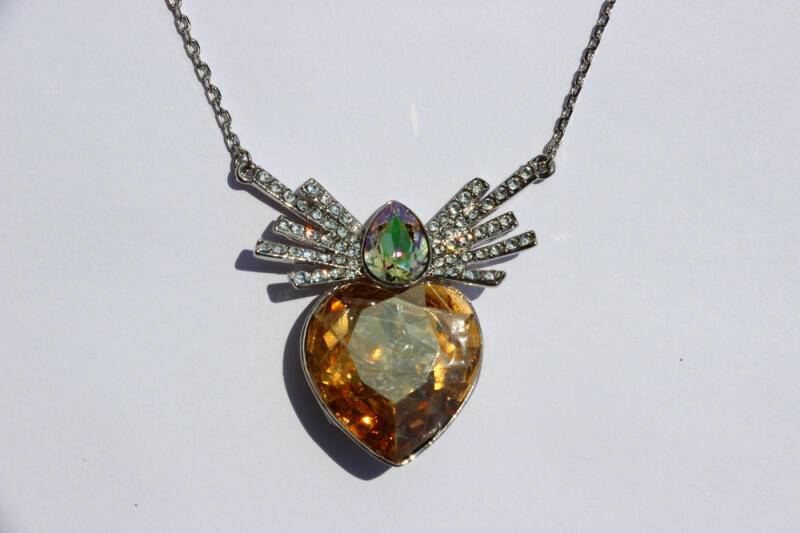 Cikkszám: 0060 Nyaklánc: - ródium bevonattal, - pezsgőszínű és színjátszó Swarovski kristállyal, - apró áttetsző kristályokkal, - állítható hosszúságú lánccal (40 cm - 45 cm). Súlya: 12 g. Anyaga: minőségi fémötvözet. A medál mérete : 5 cm x 5 cm. Gyönyörű, elegáns, exkluzív Swarovski kristályos ékszer ! A megadott méreteket kérjük vegyék figyelembe !