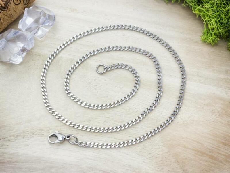 Klasszikus és kedvelt fazonú, üreges kialakítású, ródiummal bevont, 3+1 szemkötésű, masszív ezüstlánc.