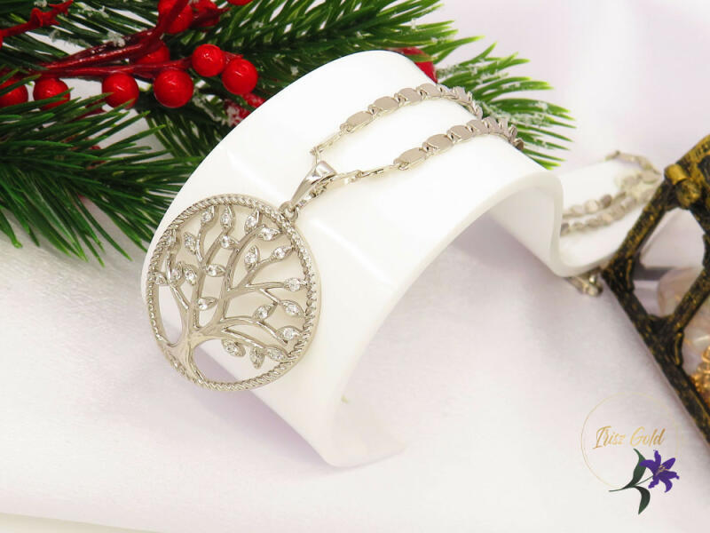 Antiallergén Életfa szimbólumos kör alakú medálos nyaklánc Szin: rodium Méret: 50cm/3mm Medál: 35x28mm A forgalmazott divatékszerek alapanyaga nikkel és ólommentes ezért többnyire nem okoznak allergiás tüneteket, nyugodtan hordhatják fémérzékeny emberek is. Általában nem színezik a bőrt és más divatékszerekhez képest nagyságrendekkel jobb kopásállósággal rendelkezn