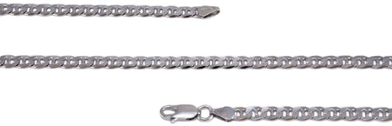 Klasszikus és kedvelt fazonú, ródiummal bevont, üreges kialakítású, 3+1 szemkötésű ezüstlánc.
