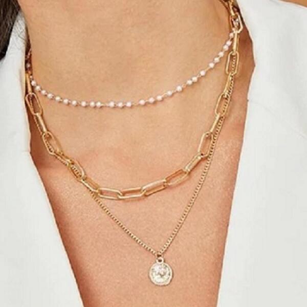 Different Nyakék Modern Different nyakék verhetetlen áron. Többsoros, 3 nyakláncból álló nyakék, medállal. Tulajdonságok: A nyakék hossza: a legrövidebb 32cm, a leghosszabb 52cm + 7cm hosszabbító lánc A medál mérete: 1cm x 1cm Anyaga: Fém ötvözet Szín: Arany/Tip14