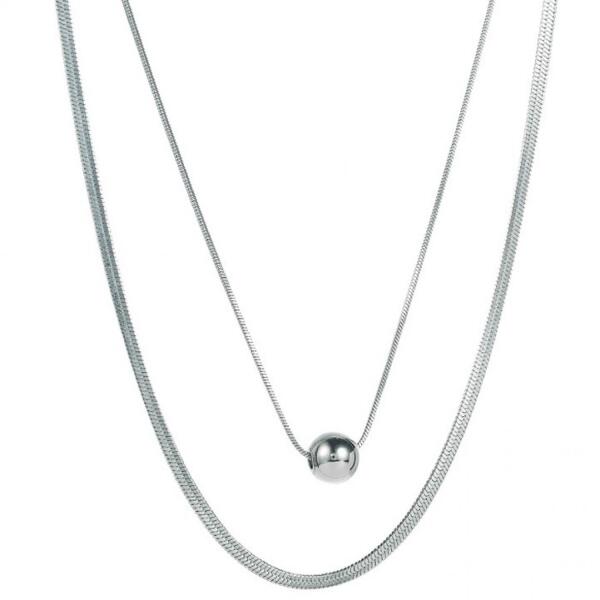 Finley Nyakék Különleges Finley nyakék verhetetlen áron. A nyakéket kettő különálló nyakék alkotja, amelyeket együtt de akár külön-külön is viselheti. Az ékszer nem tartalmaz nikkelt, ezért érzékeny bőrű emberek is viselhetik. Tulajdonságok: A lapos nyaklánc hossza: 42cm + 5,5cm A golyócskás nyaklánc hossza: 36cm + 5,5cm Anyaga: Nemesacél Szín: Ezüst