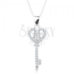 925 ezüst nyaklánc, melyet egy finom, ragyogó lánc alkot ovális szemekből, valamint egy medál antik kulcs alakban. A medál felszíne apró, átlátszó cirkóniákkal van kirakva. A kulcs felső része szív alakú, dísszel a közepén. A lánc rugós gyűrűzárral van ellátva és mérete állítható. Medál mérete: 10 x 23 mmMedál súlya: 1,4 gNyaklánc szélessége: 1 mmNyaklánc h