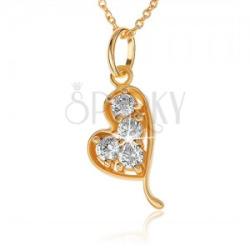Nyakék 925 ezüstből arany színben, ferdén összekapcsolt kerek szemekből álló láncból és medálból. A medál egyenetlen szív alakú, amelybe négy kerek átlátszó kő van ültetve és karmokkal megfogva. A szív egyik oldala hosszabb és a vége hajlított. A medál méretei: 11 x 20 mmA medál súlya: 1,4 gA lánc szélessége: 1 mmA lánc hossza: 450 mmA lánc súlya: 1,5 gFémjel