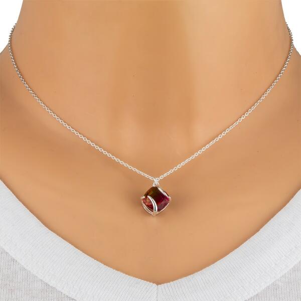 925 ezüstből készült nyaklánc egy vékony lánccal, amely függőlegesen összekapcsolódó kis kerek láncszemekből áll. A medál egy piros, négyzet alakú turmalinból készült, enyhén lekerekített élekkel. A turmalinon keresztül futnak a tartó vállai, amelybe be van ágyazva. A nyaklánc rugós gyűrűzárral rendelkezik. A medál méretei: 13 x 15 mmLánc szélessége: 1,4 mmNya