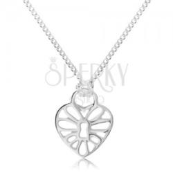 925 ezüst nyakék finom láncból arpó, ovális szemekkel és egy lakat alakú medálból, amely szív formájú. A szívecske egyenetelen kivágásokkal díszített. A nyakék hossza állítható és delfinkapoccsal záródik. A medál méretei: 10 x 11 mmA medál súlya: 0,5 gA lánc szélessége: 1 mmMax. lánc hossz: 450 mm (+/- 5 %)A lánc súlya: 1,4 gFémjelzéssel ellátott.