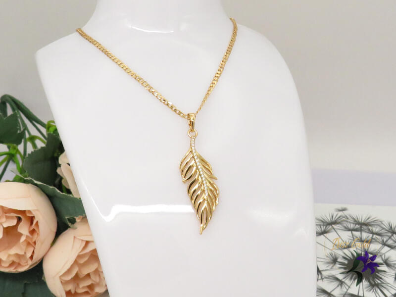 Antiallergén gyönyörű hosszú levél medálos nyaklánc . Medál közepében apró cirkon kövek. Szin: 18K Méret: lánc 49 cm /2,5mm Medál: 50x15mm A forgalmazott divatékszerek alapanyaga nikkel és ólommentes ezért többnyire nem okoznak allergiás tüneteket, nyugodtan hordhatják fémérzékeny emberek is. Általában nem színezik a bőrt és más divatékszerekhez képest nagyságre