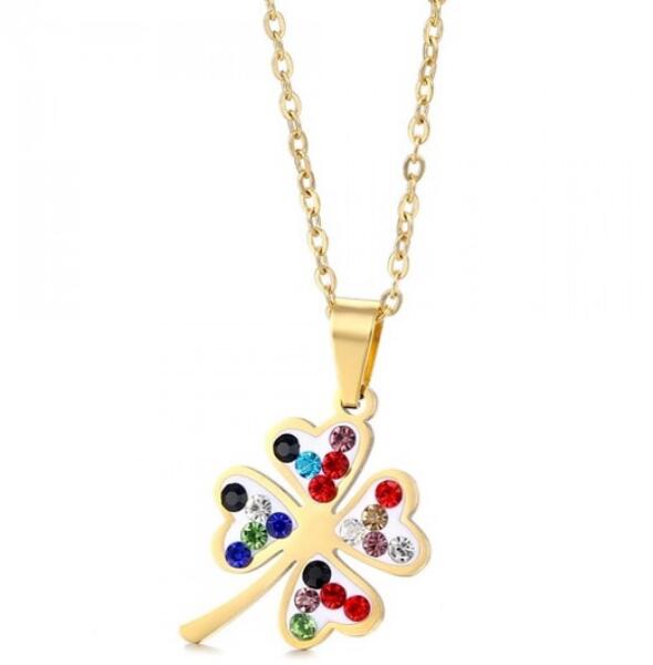 Color Leaf Nyakék Divatos Color Leaf nyakék verhetetlen áron. A négylevelű medál színes cirkónia ékkövekkel díszített. Az ékszer nem tartalmaz nikkelt, ezért érzékeny bőrű emberek is viselhetik. Tulajdonságok: A nyaklánc hossza: 36cm + 4cm A medál mérete: 2,1cm x 1,5cm Anyaga: Nemesacél Szín: Arany/Multi
