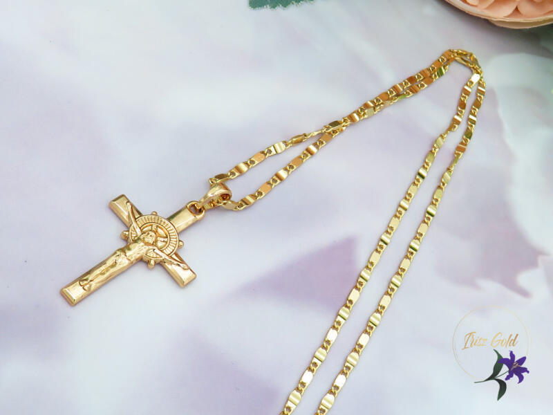 Gold Filled kereszt medálos nyaklánc Kereszt : 35x20mm jézust ábrázolja Lánc : 50 cm / 2,5mm A forgalmazott divatékszerek alapanyaga nikkel és ólommentes ezért többnyire nem okoznak allergiás tüneteket, nyugodtan hordhatják fémérzékeny emberek is. Általában nem színezik a bőrt és más divatékszerekhez képest nagyságrendekkel jobb kopásállósággal rendelkeznek. A fehér