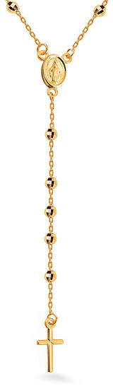 Gyönyörű nyaklánc, rózsafüzért formázó klasszikus kivitelezésben. Az Anker mintázatú láncot tündöklő golyócskák díszítik, Szűz Mária kis medailonjával és egy kereszttel, ahol az ékszer felületi kezelése magasfényű. A zár típusa a biztonságos rugós karika.