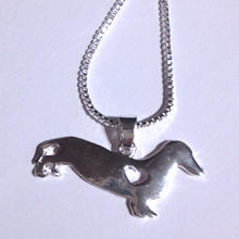 Fém hatású tacskós medál, amelynek a közepén ki van vágva egy szív - hát nem édes?