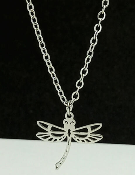 Ezüstszínű nemesacél ( 316L ) nyaklánc, nemesacél ( 316L ) szitakötő medállal. Időtálló ékszer, amit fürdéskor sem kell levenni, bátran viselhető folyamatosan. Antiallergén ékszer. Nyaklánc hossza: 45 cm + 5 cm hosszabbító. Nyaklánc szélessége: 1,5 mm. Szitakötő medál mérete: 15 mm x 14 mm. A nemesacél ékszerek rendkívül népszerűek kedvező tulajdonságaik miatt.