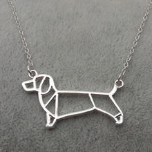Az egyik legnagyobb méretű, impozáns tacskós nyakláncunk ez az origami stílusú, "hajtogatott" fém tacsi, amelynek mérete kb. 4,5 x 2,5 cm, a fém lánca pedig kb. 43 cm hosszú.