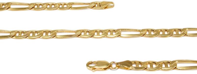 Kedvelt fazonú, "h-figaró" típusú, üreges, de masszív kialakítású aranylánc.