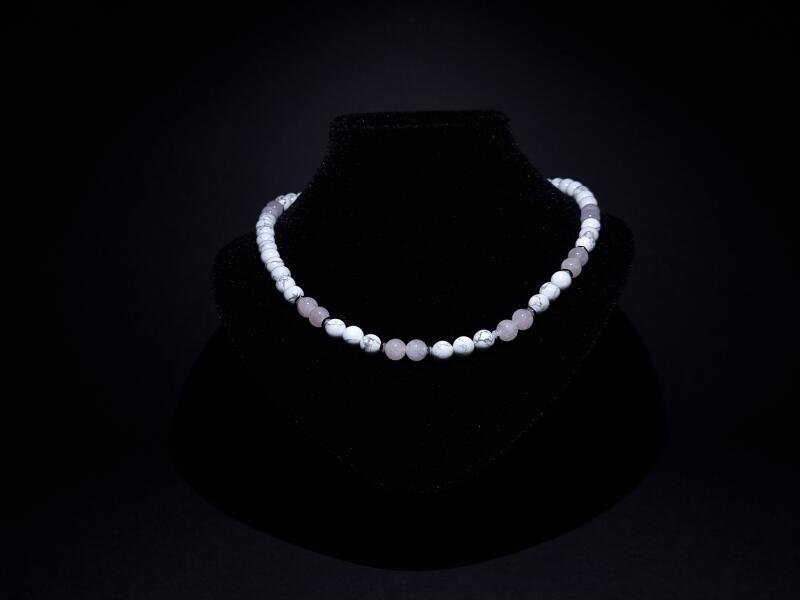 Kiváló minőségű valódi howlit, madagaszkári rózsakvarc ásványból készült nyaklánc. A howlit elegáns fehér tónusaival és erezetes mintázatával stílusos kiegészítő, amely a nyugalom és a tisztaság megtestesítője. A nyaklánc valódi howlit, madagaszkári rózsakvarc 8-9 mm ásványból készült. Az ásvány, nyaklánc formában viselve nemcsak stílusos kiegészítő, ha