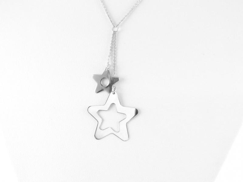 Nekünk nagyon tetszik ez a jópofa csillagos ezüst nyaklánc! :) Ajánljuk minden olyan hölgynek, aki odafigyel a részletekre és szereti apró kiegészítőkkel megmutatni különleges egyéniségét. A nyaklánc állítható méretű: kb. 41.5 - 44 cm között.