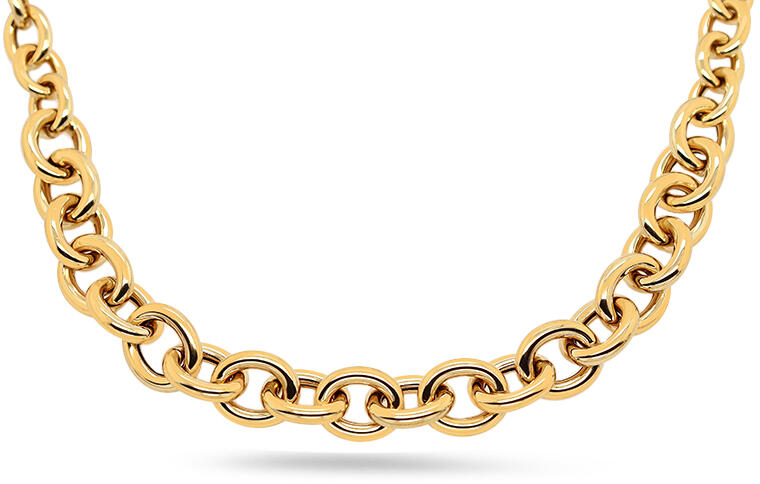 Elegáns Pancer, más néven Curb mintájú lánc. Klasszikus ovális szemek alkotják, amelyek finoman hengereltek. Az alkalmazott zártípus rugós karika. Hosszát a rendelkezésre álló méretek közül választhatja ki.