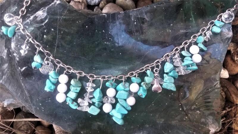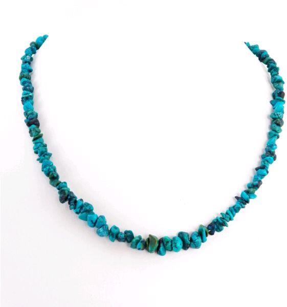 Természetes, csiszolatlan apró türkiz szemcsékből készítettem nyakláncot. Az türkiz vélt hatása
