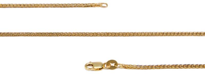 Az arany 585 nyaklánc három ovális, lekerekített szem mintájából tevődik össze és egy hosszúkás, lapos felületű szemből. A nyaklánc felülete sima és tükörfényes. Delfinkapoccsal záródik. A nyaklánc szélessége: 3,7 mmA nyaklánc hossza: 500 mm (+/- 5 %)A zárószem szélessége: 2,2 mmA nyaklánc súlya: 3,7 gFémjelzéssel ellátott.